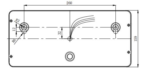 噴灑燈安裝方式采用壁掛方式。先安裝兩只M6×60膨脹螺栓,安裝孔距為260mm(見圖5-15),再將噴灑燈接好線,調(diào)節(jié)好膨脹螺栓的高度,將噴灑燈緊掛在墻上。也可將外殼上蓋打開,把膨脹螺栓的螺母擰緊。